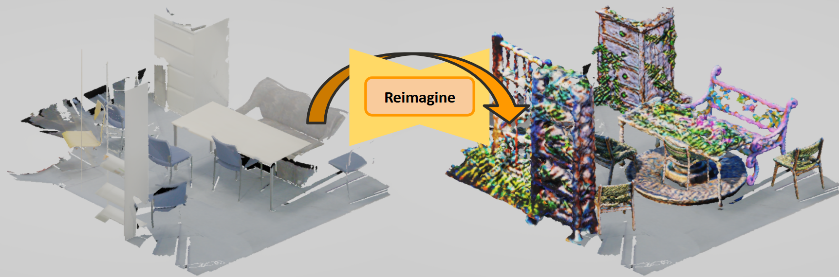 Reimagine 3D scenes using part-level semantic segmentation and locally-controlled 3D asset generation. Collaboration with Stanford Gradient Spaces Lab